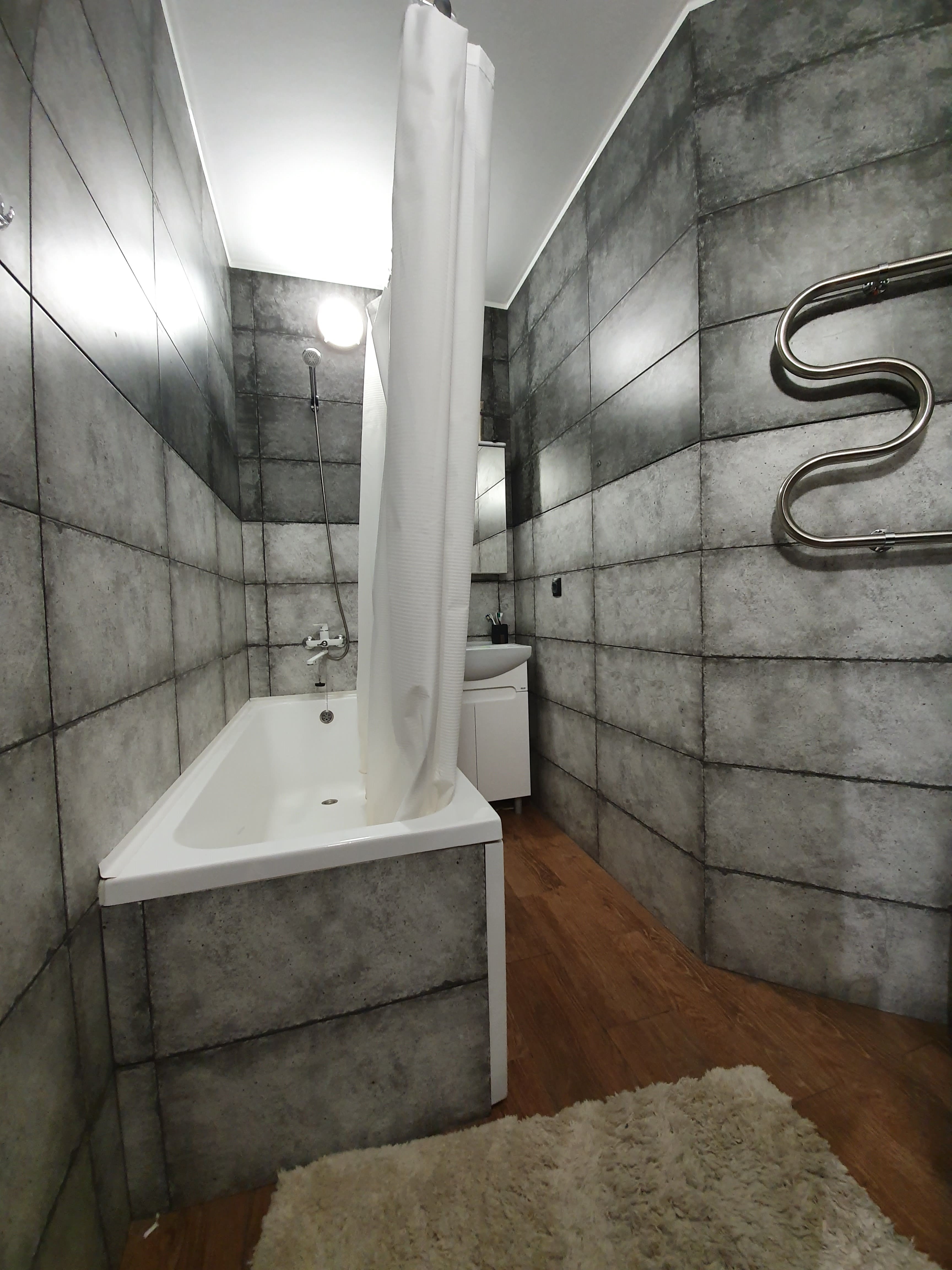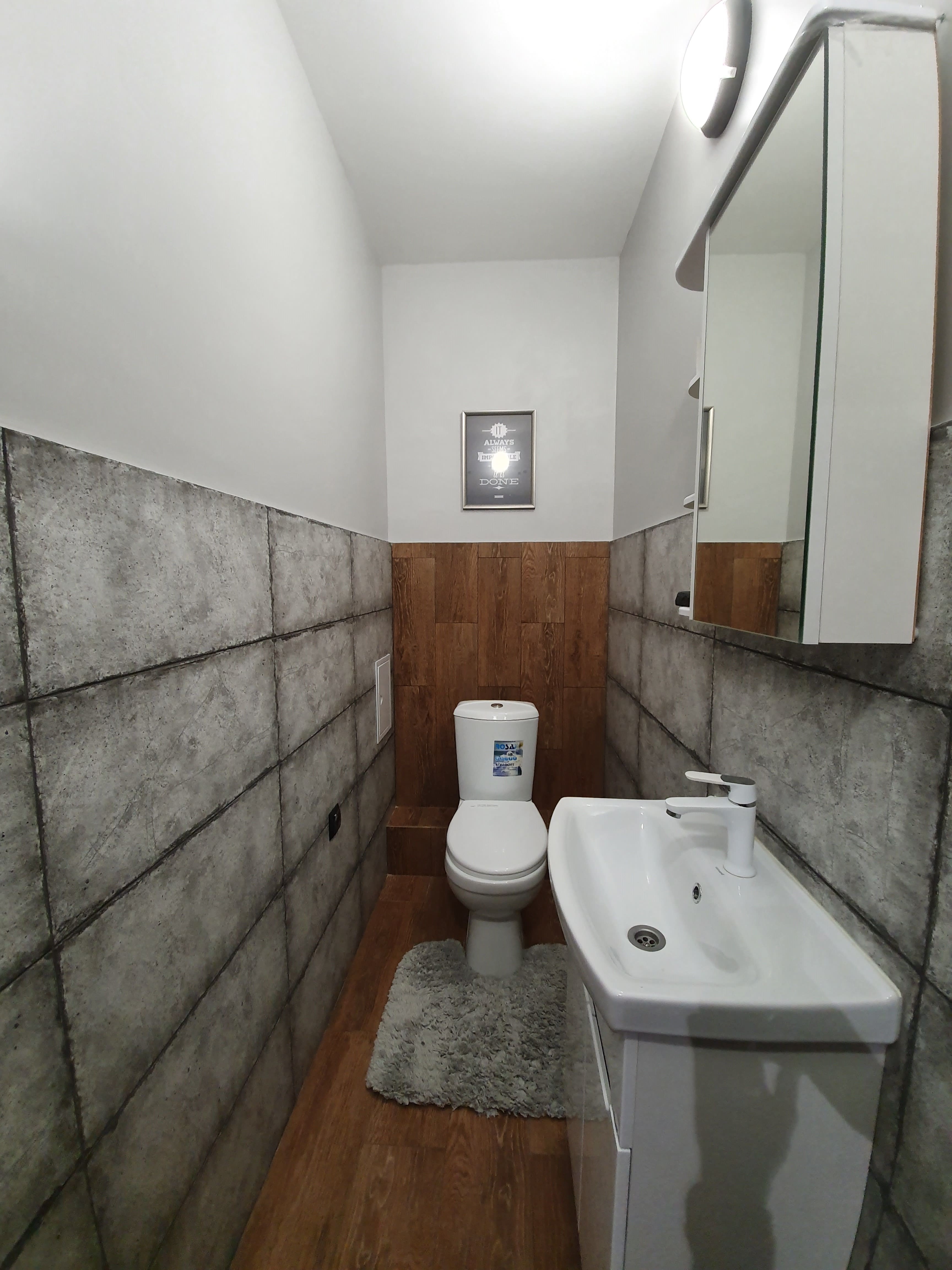 Этот стиль для людей, стремящихся к простоте и надежности. Главный принцип этого стиля – строгость и геометризм, отказ от лишнего декора. Использованы однотонные материалы, только в детской комнате стена оформлена обоями с мелким геометрическим рисунком. В остальных комнатах цветовое решение выполнено в серых тонах. Пол оформляется ламинатом и керамогранитной плиткой. Минимализм сегодня – это скорее всего философия, мировоззрение. В современном темпе жизни человек создает себе незахламленное светлое пространство, спокойствие и гармонию.